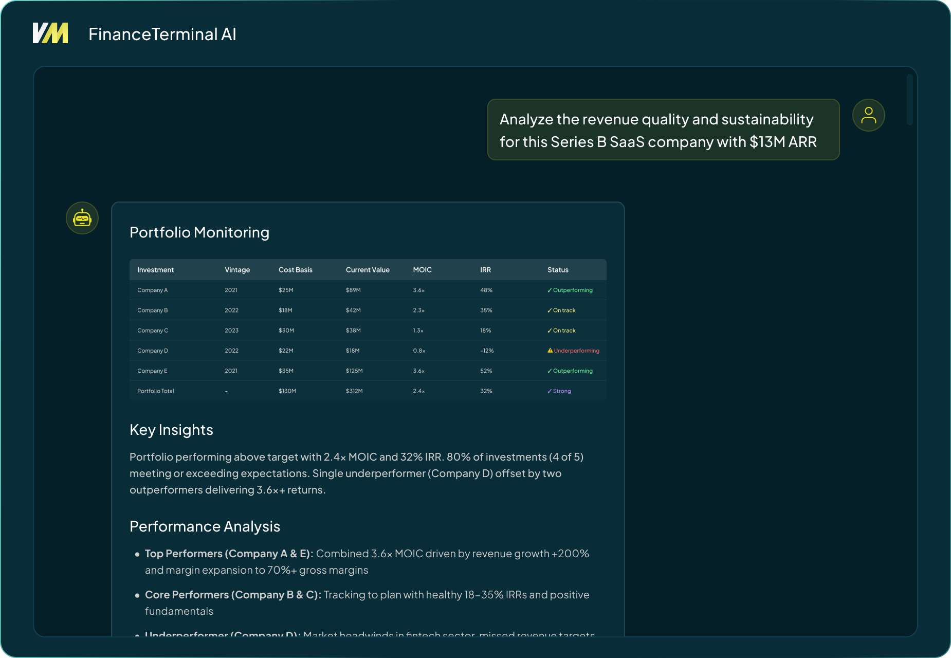 Revenue-based financing, covenant-heavy term sheets, and bespoke deal structures require constant oversight, but traditional monitoring relies on manual data pulls and retrospective reporting.